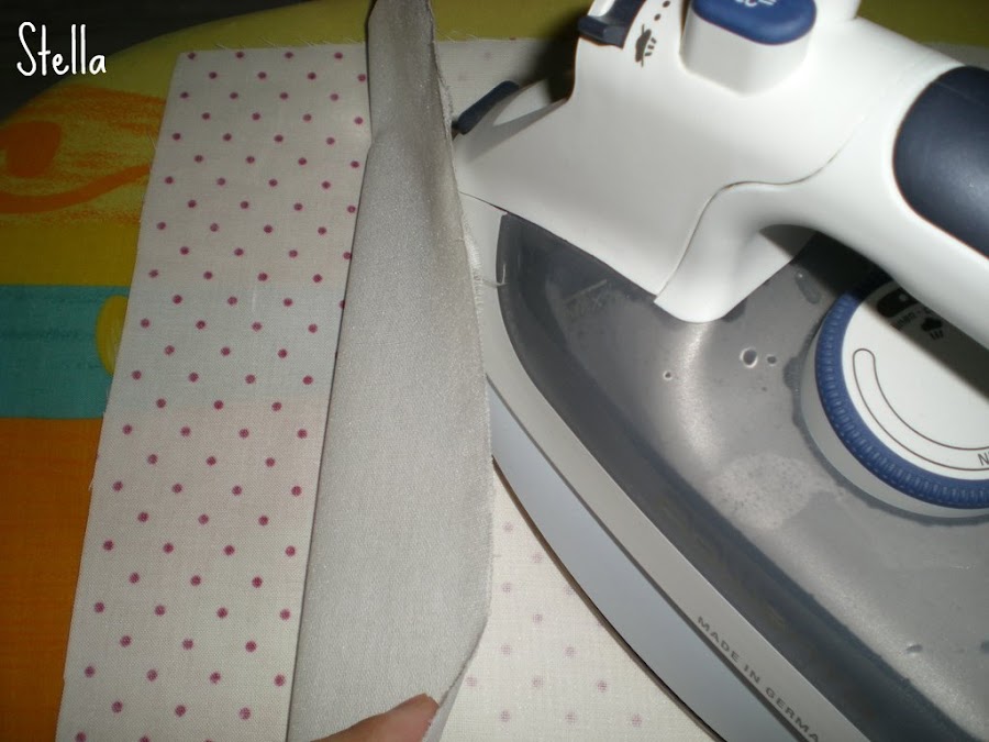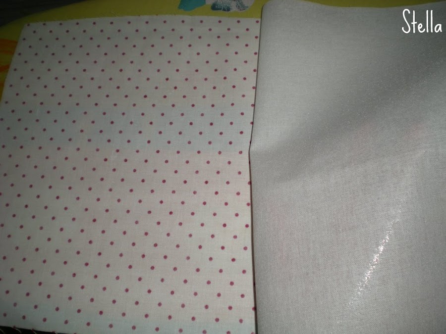 4-Pegar con la plancha bien caliente la entretela sobre el revés de una de las telas,cuidando que la parte del pegamento quede hacia adentro,y que la tela esté del revés!!.