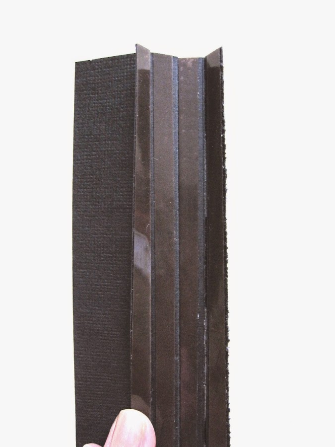 Ahora es cuando pegamos sobre la base de la estructura ya decorada poniendo este "espinazo" en el lado izquierdo de la hoja.