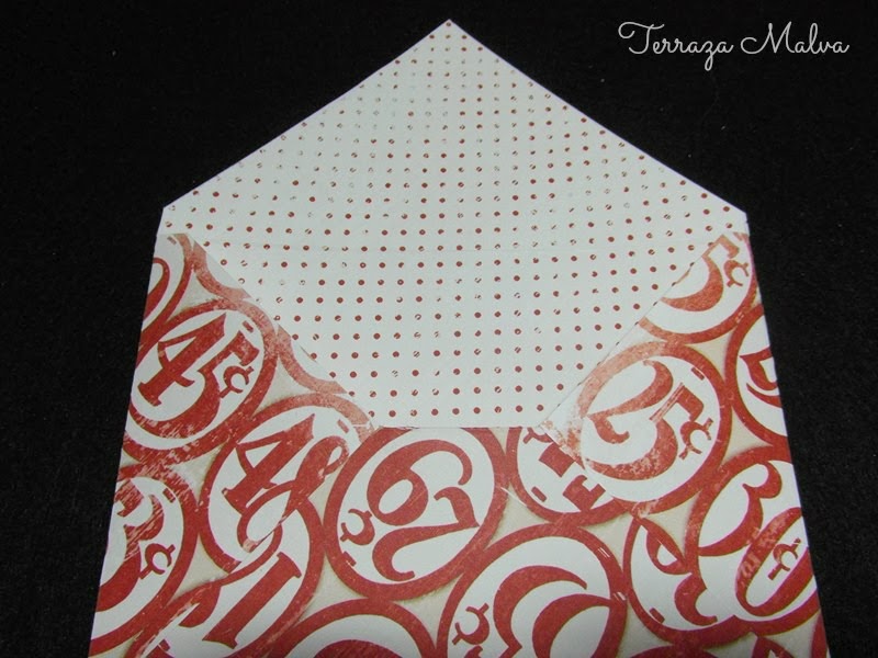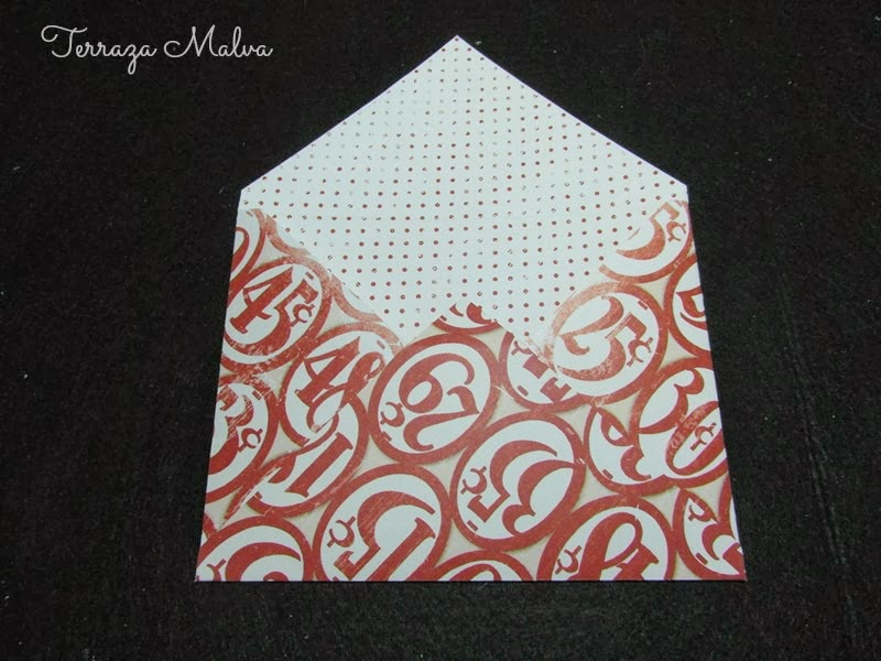 En el interior del sobre se verá la decoración de lunares rojos. Si el papel que vamos a utilizar está decorado por ambas caras hay que procurar que en el interior quede un color liso o que tenga una decoración sencilla para no recargar el aspecto del sobre.