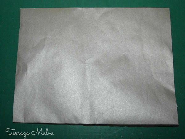Yo he reciclado una bolsa de papel de las que dan en tiendas de ropa. Es un papel bastante fuerte y con un bonito color plateado.