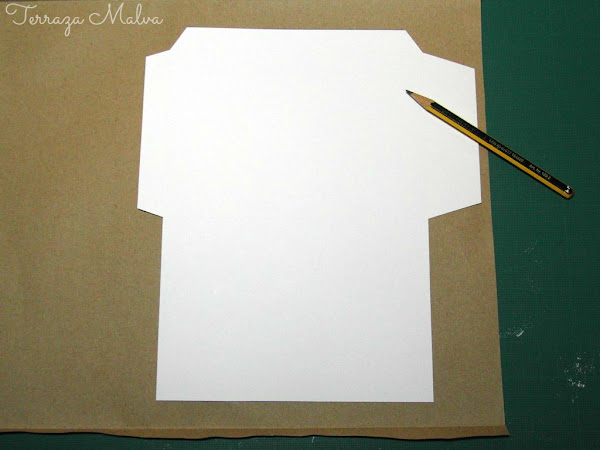 Se recorta el papel decorado con la pieza pequeña de la plantilla que hará el interior de la solapa del sobre.