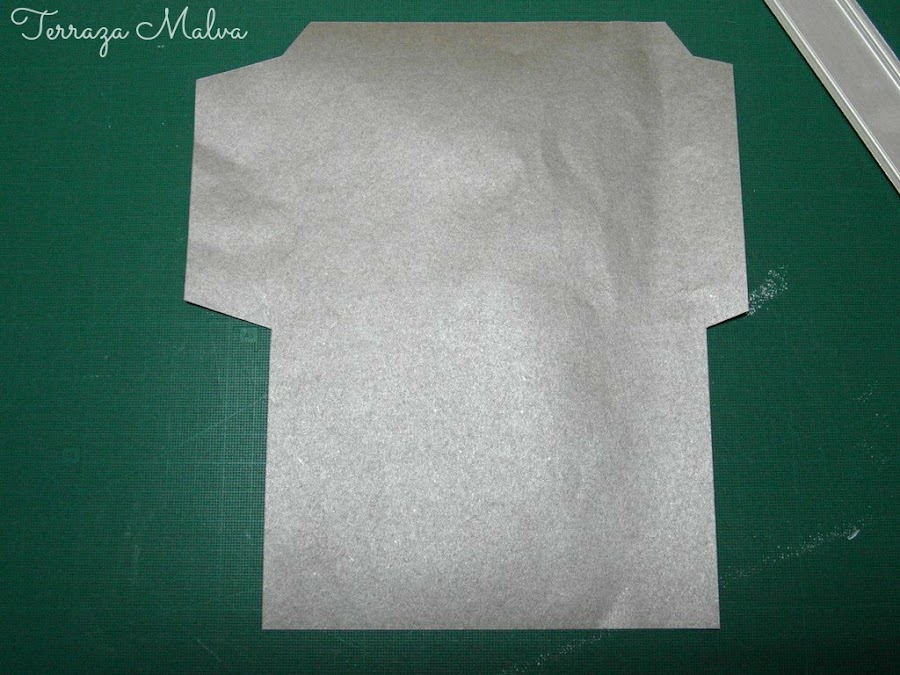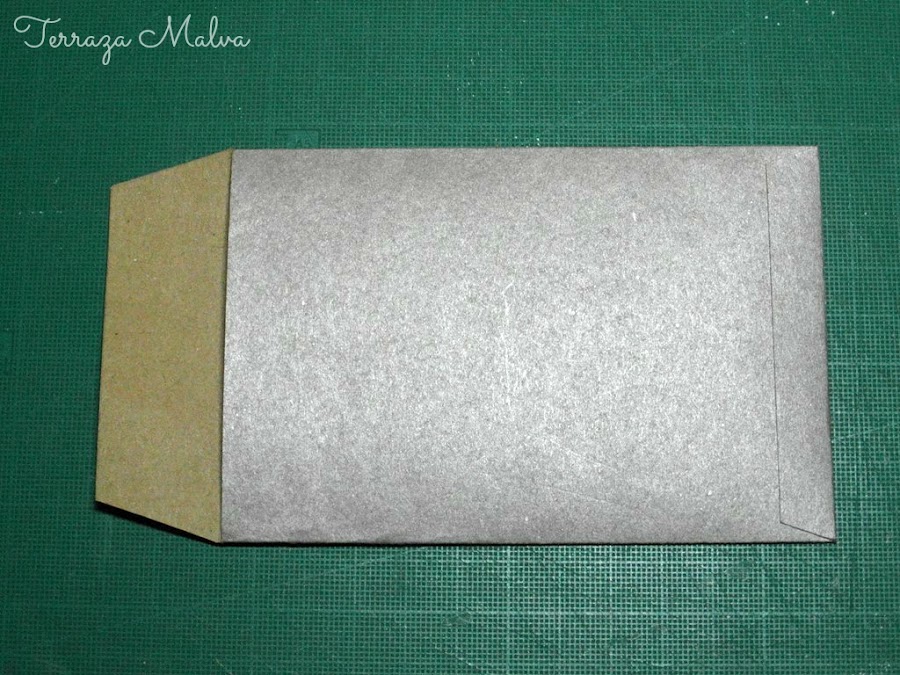 Tras recortar el cuerpo del sobre he trazado los dobleces y he aplicado un poco de cinta adhesiva a la zona de cierre lateral.