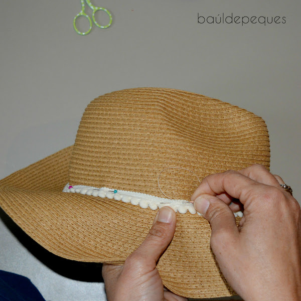 No os asustéis los que no sabéis tejer, podéis modificar ese paso y utilizar la pistola termofusible, pegando las cintas al sombrero, así lo hice en el tutorial del sombrero veraniego.