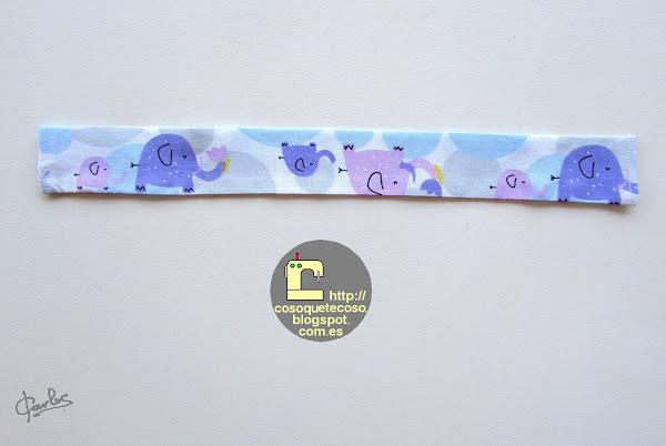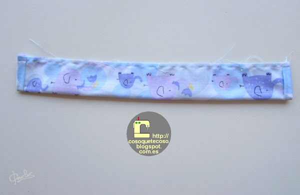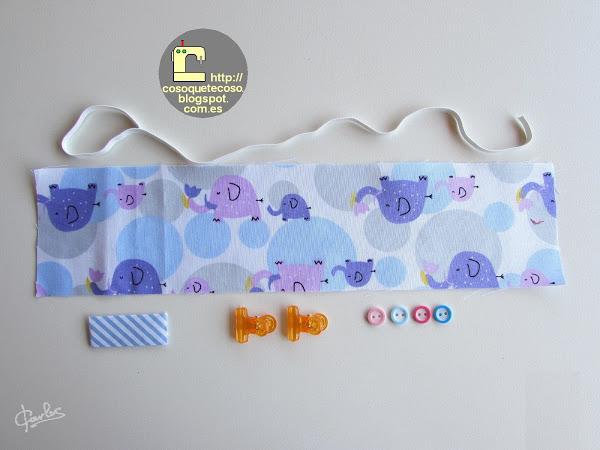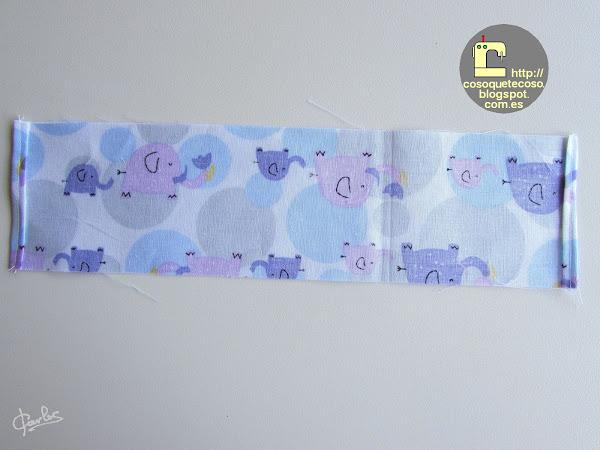 Ahora ya sólo queda meter la goma por el rectángulo, y coser los cuatro botones (dos por cada lado) para que sea reversible.