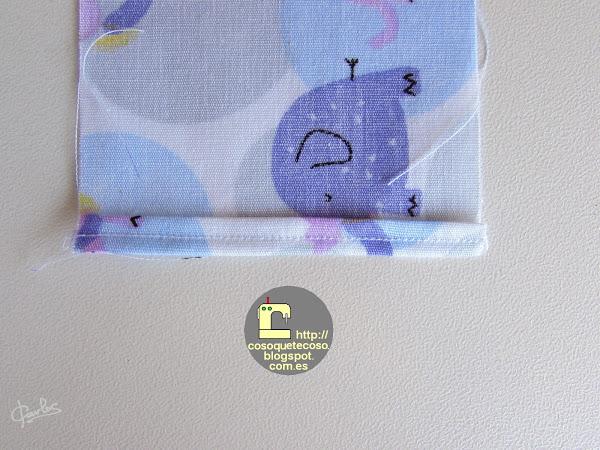 Hacemos un dobladillo en los lados más estrechos de la tela. Marcamos con la plancha y cosemos en la máquina (se podría hacer a mano).