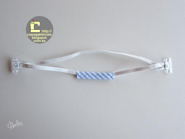 Ahora tenemos que meter las pinzas por la goma, una a cada lado y planteándolas para que no nos quede alguna al revés.
