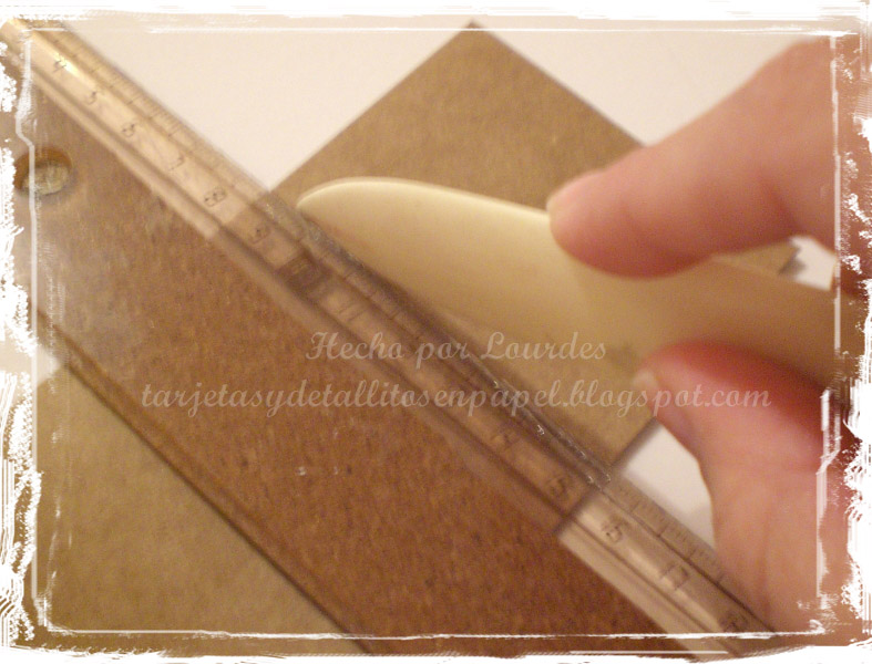 En el trozo de cartulina, en el lado más largo, hacer una marca a 5 cm usando la plegadora