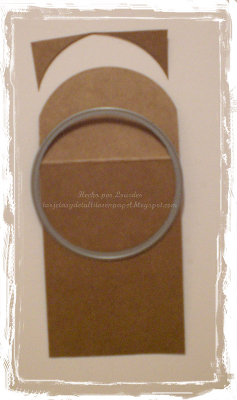 Introducir el trozo más pequeño de la cartulina a través del círculo tal como se muestra en la foto