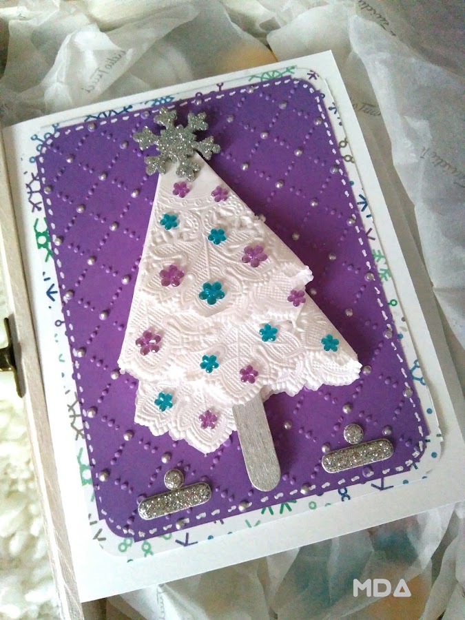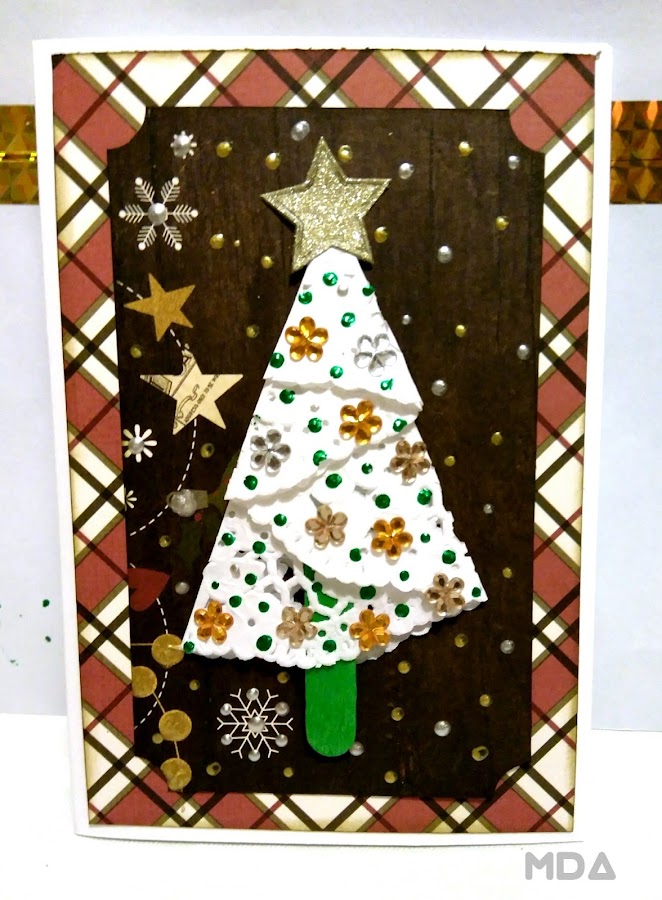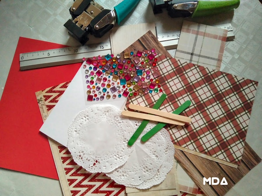 Elegimos el papel decorado que nos guste y vamos montando la tarjeta a nuestro gusto, fácil y rápido.