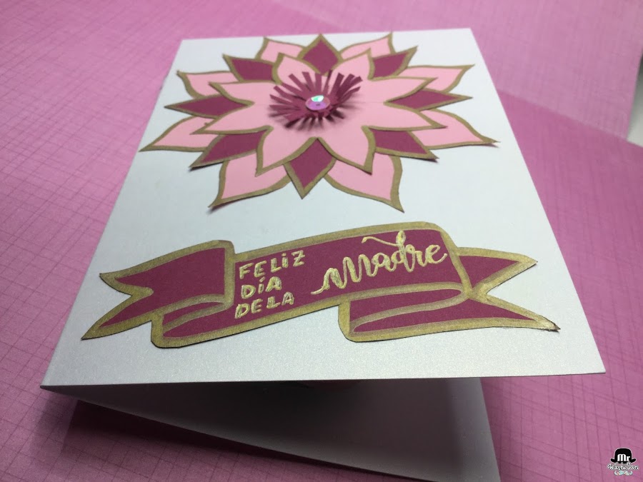 La tarjeta es muy sencilla de hacer porque os he preparado unos archivos descargables gratis con las formas que debéis recortar y pegar. El resultado es muy sorprendente, seguro que a vuestra madre le encantará!