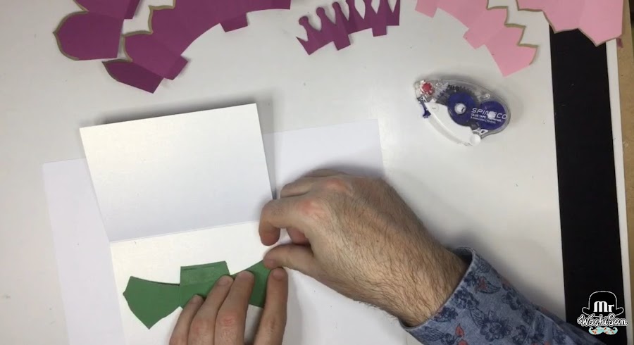 Y necesitaremos papeles de colores, un tono verde y dos colores que combinen entre sí, uno más claro y otro más oscuro. El papel si es fino os será más fácil de recortar y manipular.
