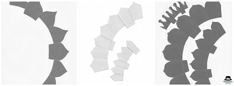 Lo primero que tenéis que hacer es descargar el siguiente link que tiene unos archivos descargables de forma gratuita con las formas de las capas de flores que producen el efecto pop-up del interior. Son unas imágenes tamaño DIN A4 que podéis imprimir y utilizar como patrón para recortar las formas definitivas en papeles de colores. Podéis utilizar papel de calca o simplemente recortar la forma y luego reseguirla a lápiz encima del papel de colores.
