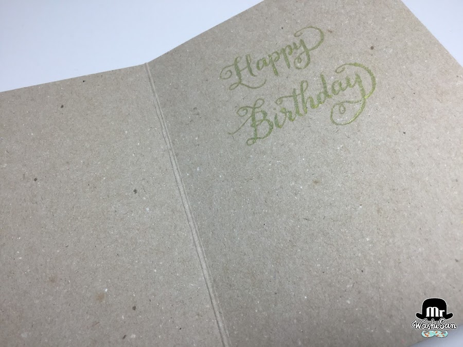 Con el mismo bolígrafo metalizado escribiremos en el interior de una base de tarjeta de color kraft la felicitación y por último llegaremos sobre esta base de tarjeta el puzzle finalizado.
