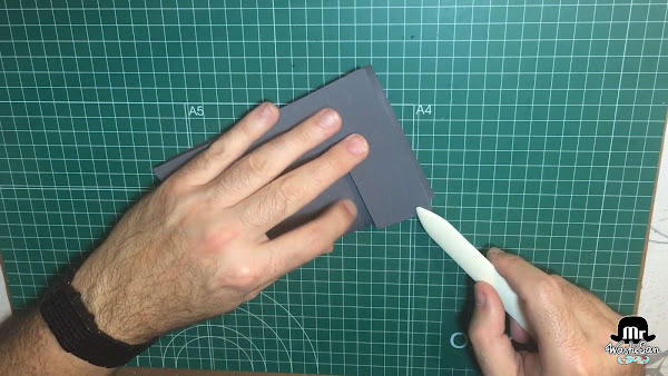 Con una regla y un buril o una plegadora vamos a realizar cuatro dobleces.