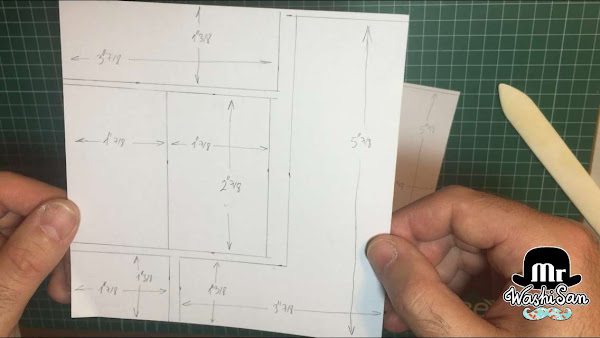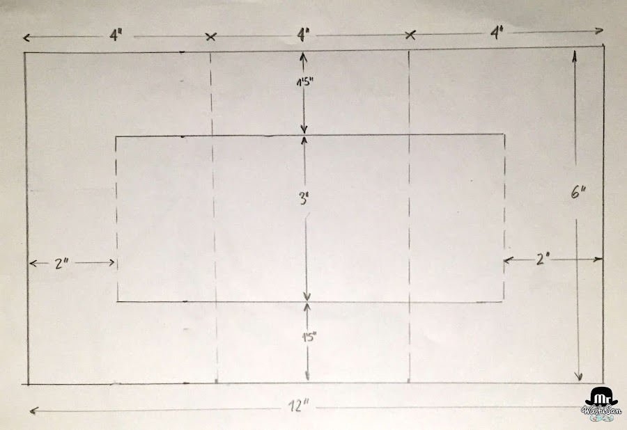 Os dejo un esquema con las dimensiones de la cartulina, las líneas de corte y las líneas de doblez (que están dibujadas con una línea discontinua).