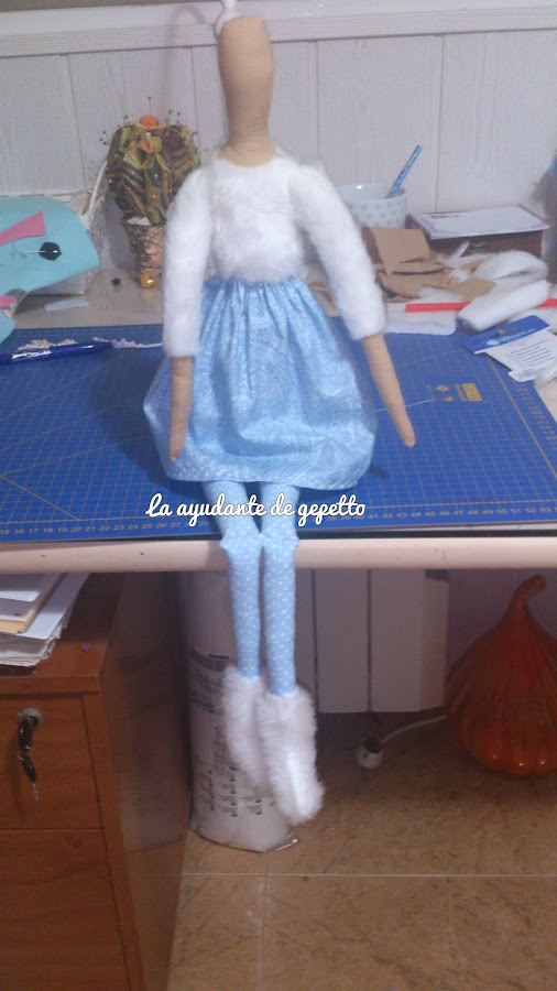 Le hacemos una costura en las piernas para que pueda doblarlas al sentarse.