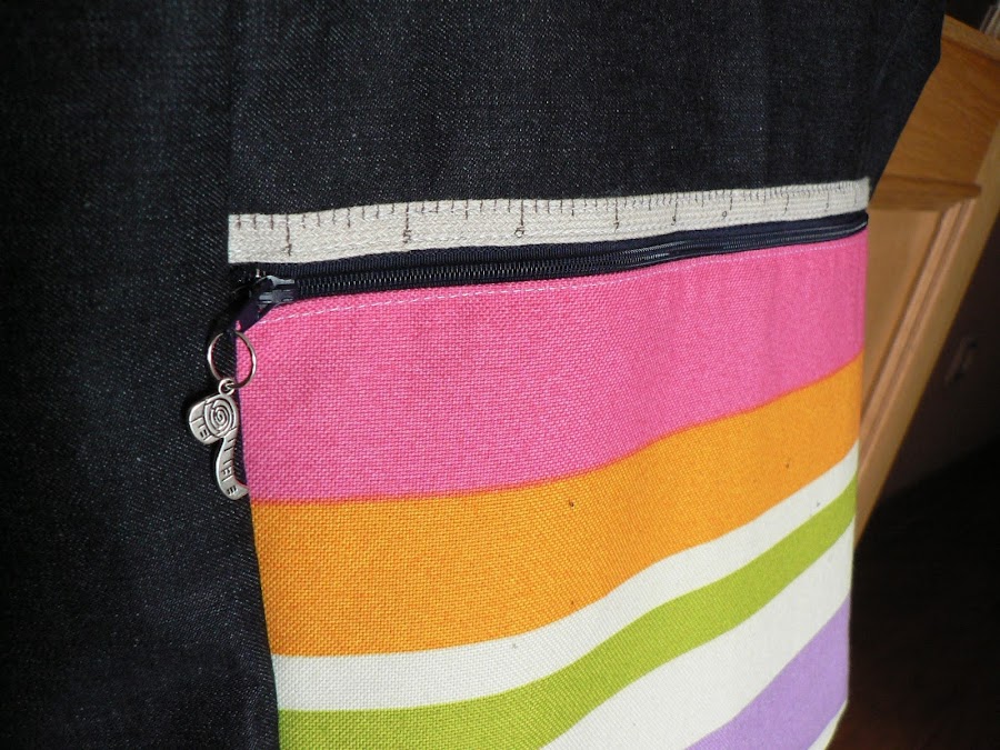 Hoy nos toca coser el exterior y unir las dos partes. Como ya tenemos todas la piezas cortadas lo vamos a acabar en un momento! Si quieres poner algún bolsillo por fuera, hazlo antes de montar nada, será lo más cómodo. Yo he puesto un bolsillo secillísimo con cremallera por delante y un bolsillo forrado con tapeta por detrás.