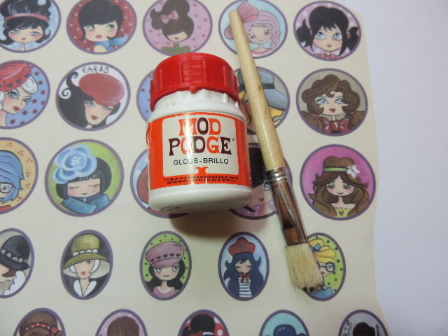 Y necesitamos además un adhesivo, que en mi caso he utilizado Mod Podge. Aunque viene muy bien, lo he utilizado casi casi por ir gastándolo, ya que es brillante y a mi los brillos solo para cosas puntuales ( por cierto el próximo truco tutorial será un poco brillante).