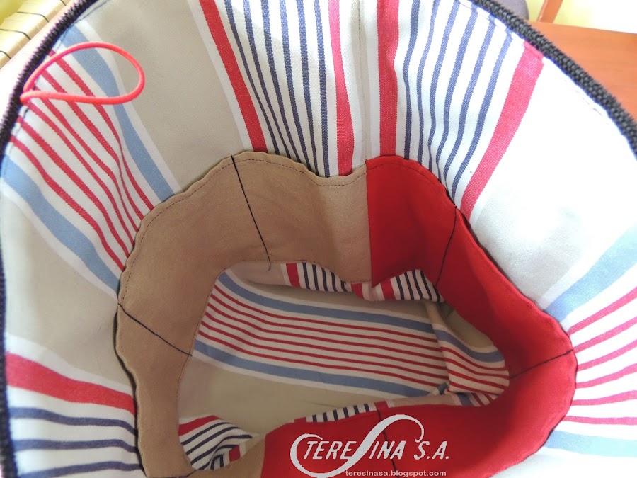 L"interior de la bossa quedarà així. A un costat les butxaques són vermelles i a l"altre beix.