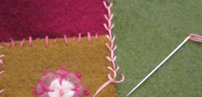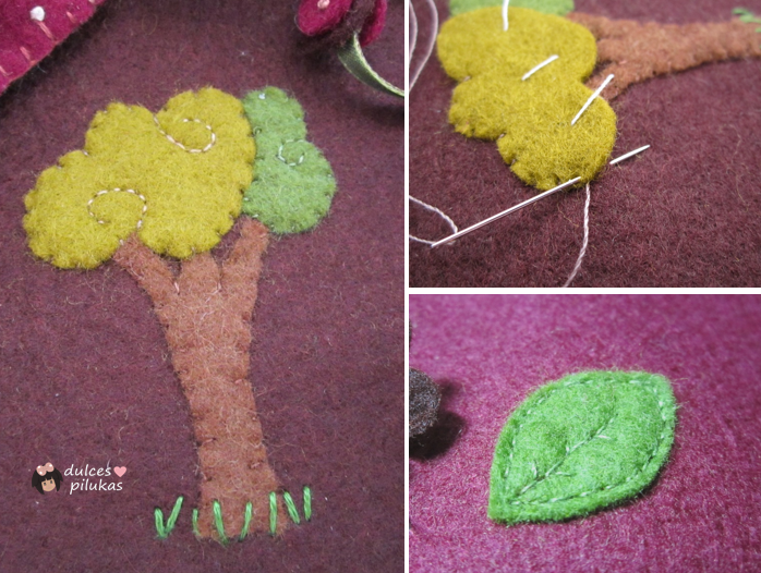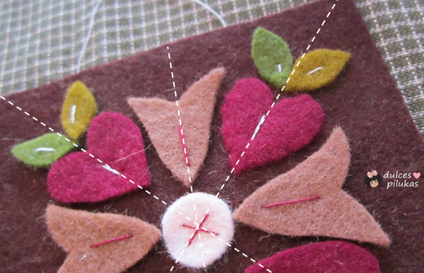 y cosemos la aplicación del tulipán con unas pequeñas puntaditas,