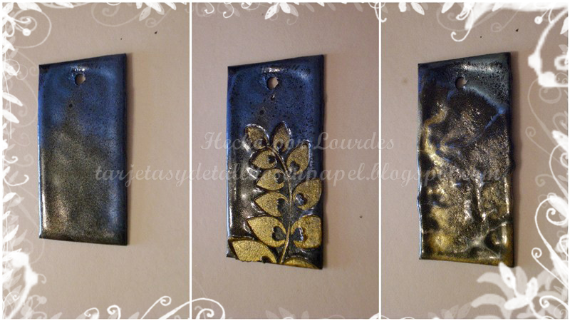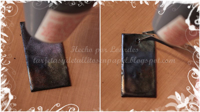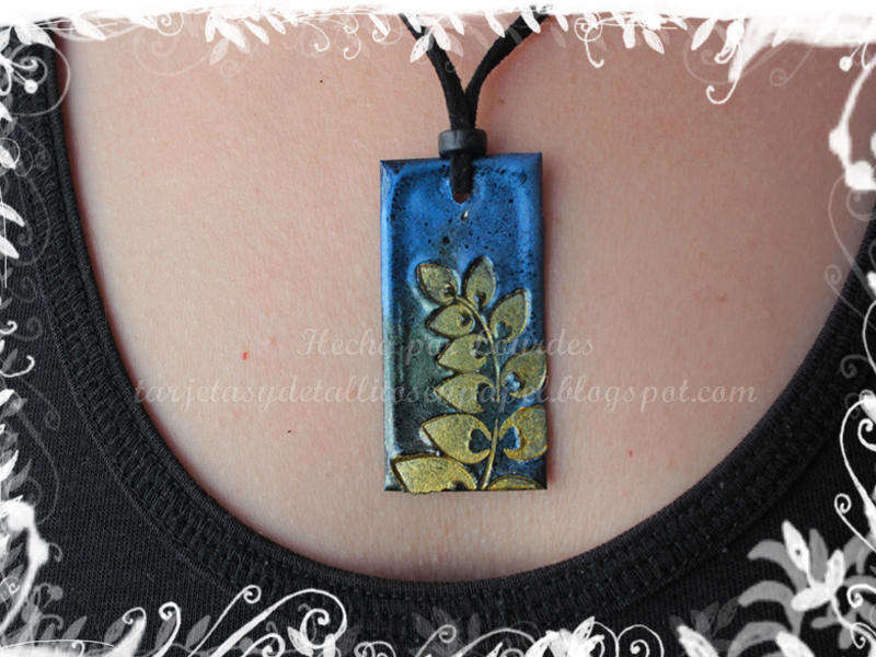 Y aquí la muestra final. He pasado un cordón negro y lo he usado como colgante