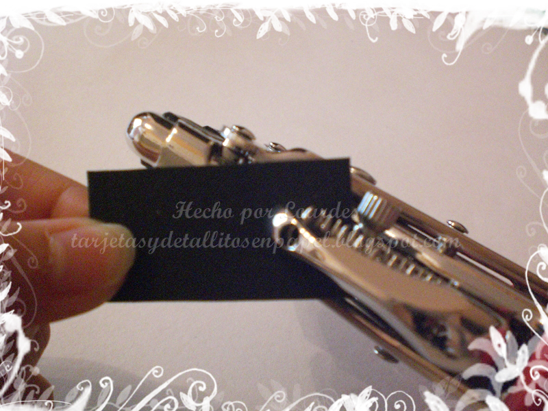 En el trozo de cartón negro perforar un agujero con la Crop-a-dile o perforador