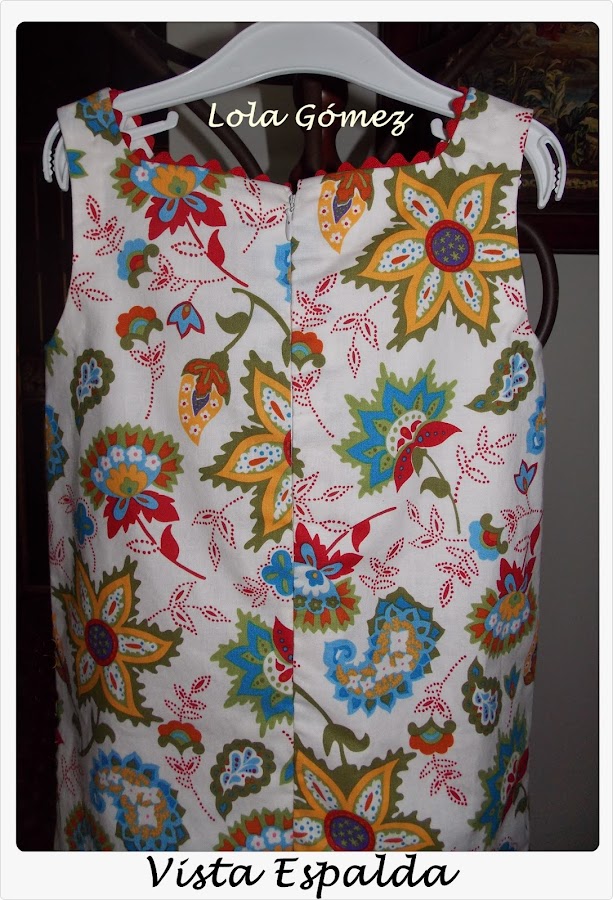 El modelo elegido, como habéis visto en la foto de entrada, es un vestido de trapecio sin manga. Lleva piquillo de adorno en el cuello y en el corte del bajo. Va forrado y quizás el detalle de costura más complejo es la cremallera invisible.