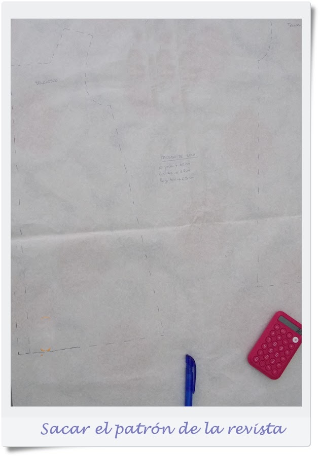 Una vez que tenemos claro cual es la talla que necesitamos, copiamos con papel de seda el patrón de la revista. Pero no lo recortamos aún.