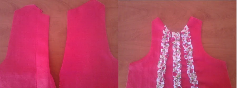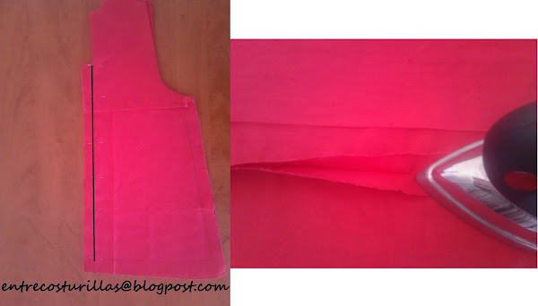 5.-Unimos la espalda por el centro y asentamos costura. Primero planchamos por el revés y después por el derecho.
