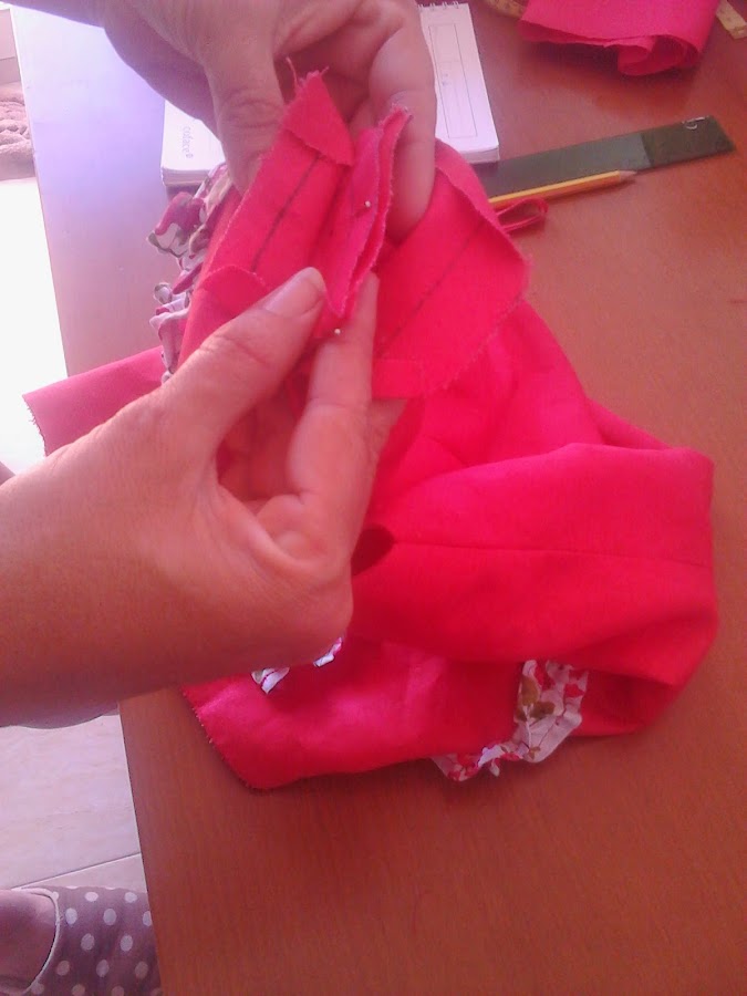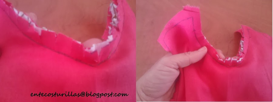 3.-Una vez que está cosido le damos unos pequeños cortes en las parte curvas del cuello y de la sisa.