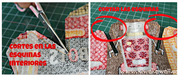 Hacemos pequeños cortes en todas las esquinas para que luego queden puntiagudas y no nos sobre tela.