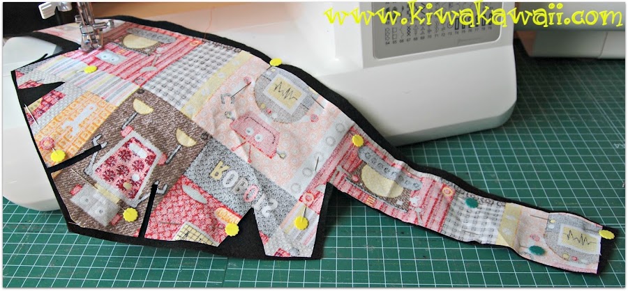 Enfrentamos el derecho de la tela estampada con la pieza de fieltro, y cosemos todo el borde dejando un hueco para luego dar la vuelta.