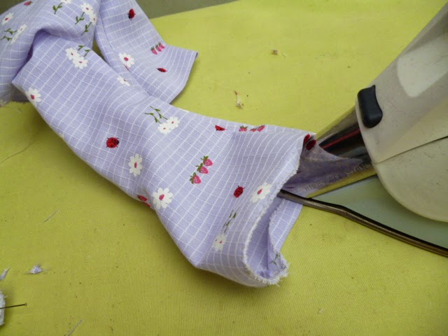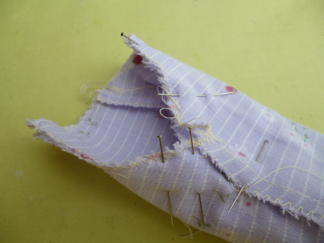 lo primero que hacemos es rematar el bajo con un bies , el sistema es el mismo que para las sisas