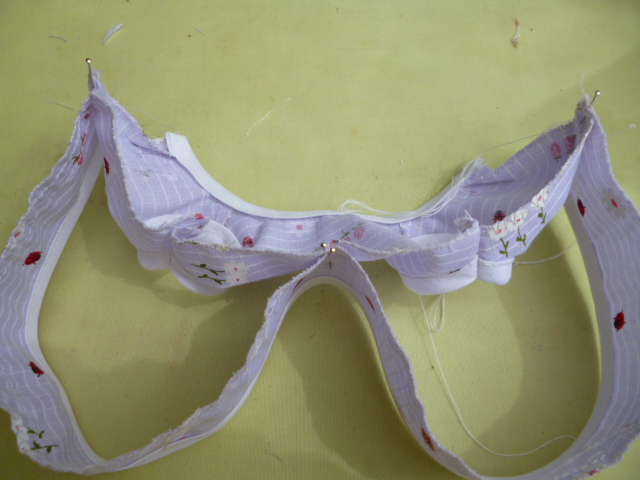 Repartimos bien el frunce , lo jujetamos al cuerpo con alfileres ,