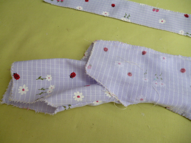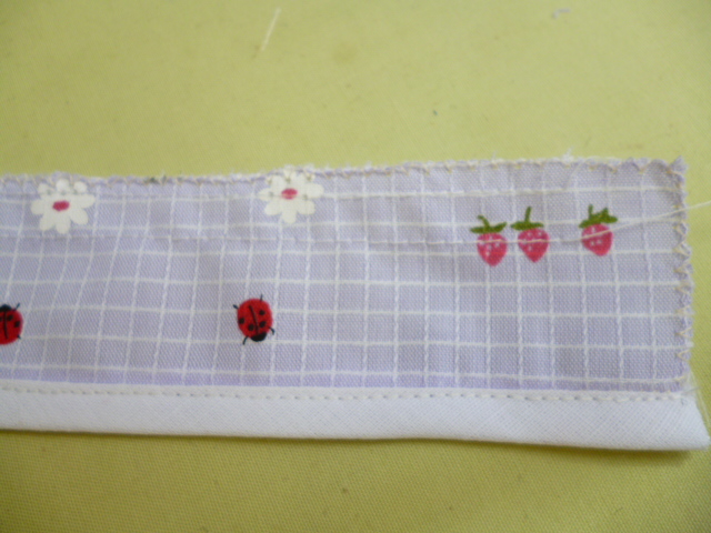 Una vez cosidas las cintas de bies las doblamos sobre si mismas e hilvanamos