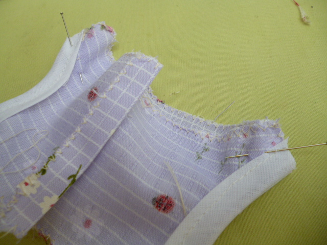 Colocamos el bies sobre el derecho de la blusa , tal y como vemos en las fotos