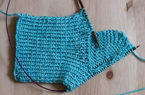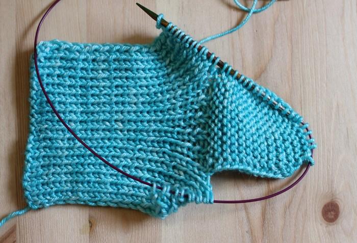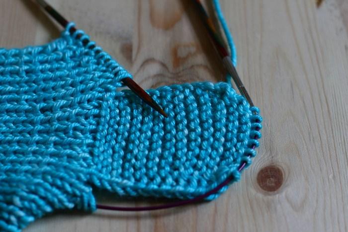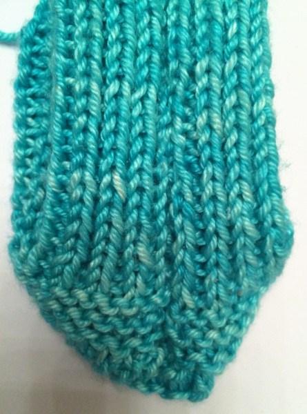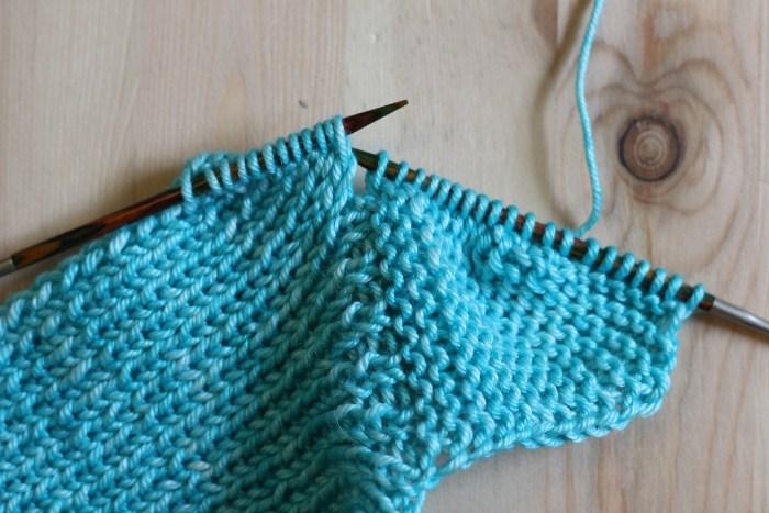 2. Sigue tejiendo en punto elástico 1×1.