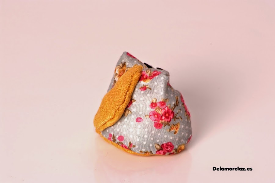 Le damos una vuelta al pico y lo cosemos hacia la mitad de la panza del animalito. Quedará así: