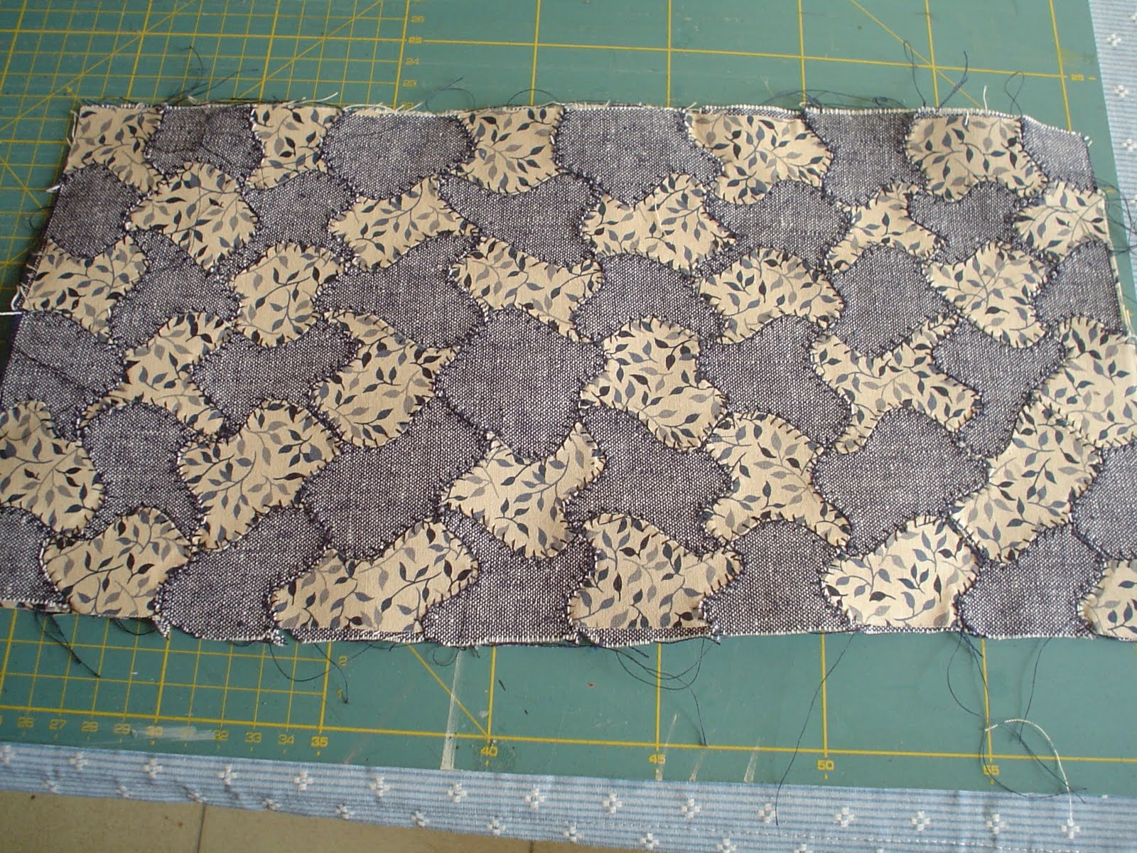 Os pongo una muestra del punto que he hecho yo, ya que asi al coser el pespunte del medio me sirve para ir siguiendo el corte del dibujo y las puntadas van cosiendo a cada lado.