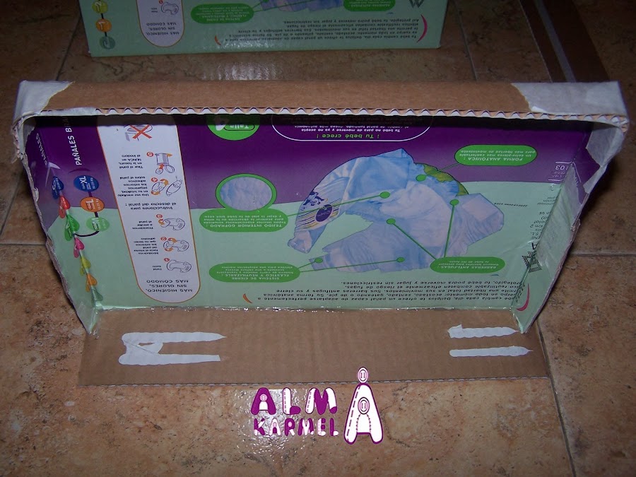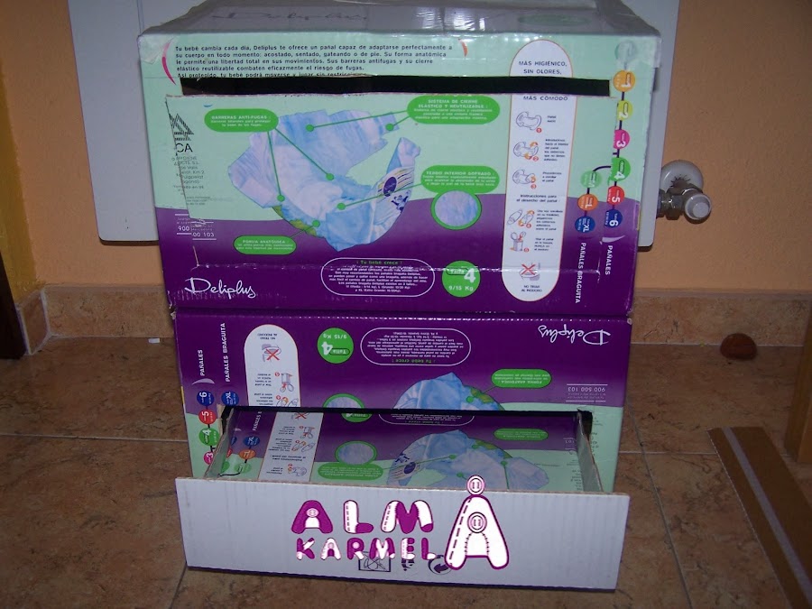 La cocinita no la quería hacer muy grande, ya que no nos sobra el espacio, y reciclé un par de cajas de los pañales del pequeño para empezarla. Y este es el resultado, paso a paso, de mi diseño de la cocinita, pero cada uno la puede adaptar a sus gustos y necesidades.