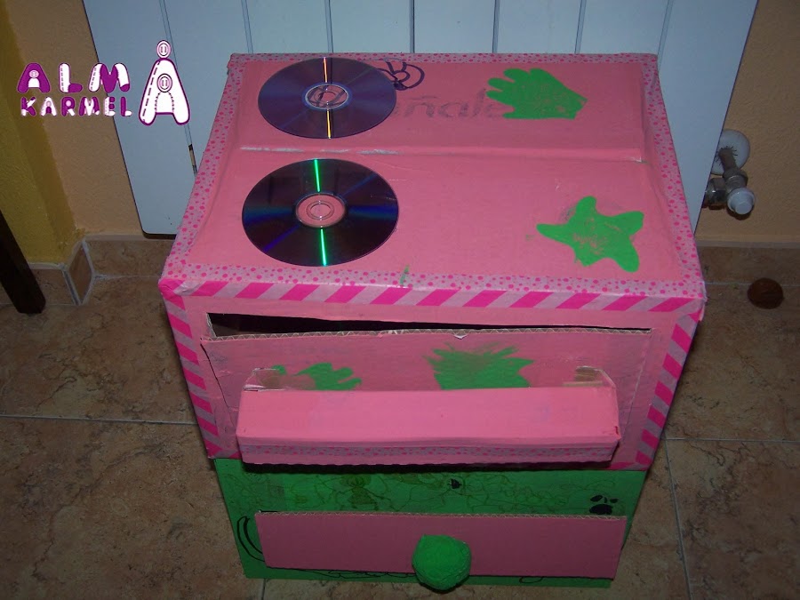 Hola a todos, hoy os traigo un trabajito que hemos estado realizando mi niña y yo. Hace ya algún tiempo, me dijo que quería que le hiciese una cocinita de cartón, yo le dije que sí, claro está, y me puse a pensar cómo hacerla, para ver el tamaño de las cajas que tenía que buscar.