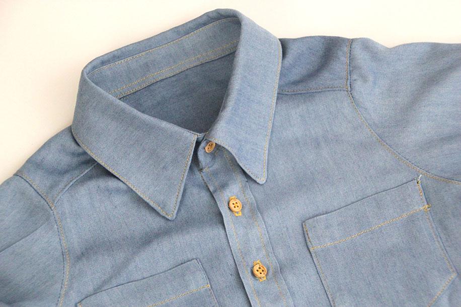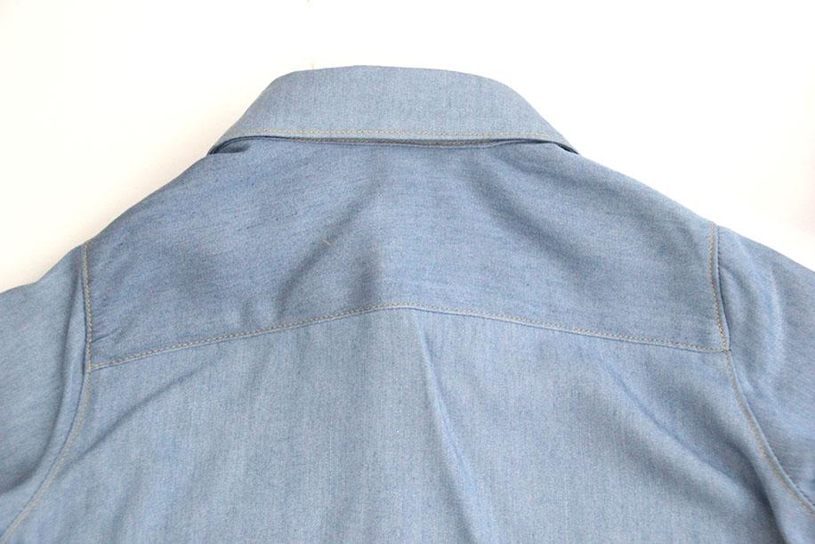 La tela que he utilizado para hacer esta camisa jeans es un tipo tercel de color azul denim. El tercel es un tejido con bastante caída y suavecito, es ideal para camisas, vestidos o blusas!!!!