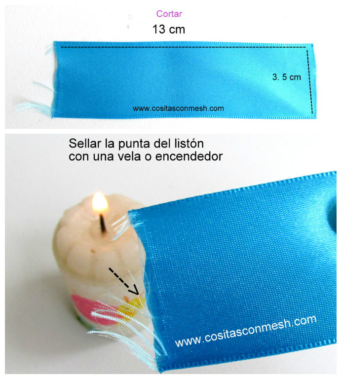 2.-No olvides sellar las puntas del listón, usa una vela o un encendedor. Así de fácil ya no se deshilachara el listón.