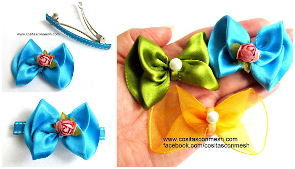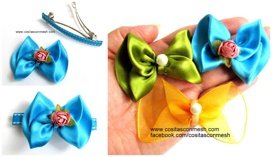 Una vez que ya tengas el moñito listo, pegalo o coselo en los pasadores, ganchitos, diademas para el cabello, coleteros o vestidos etc.