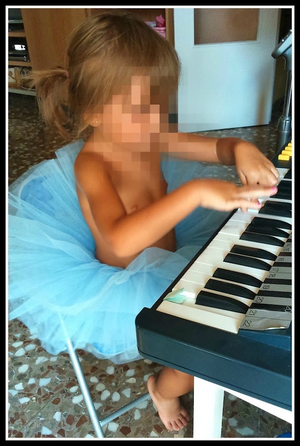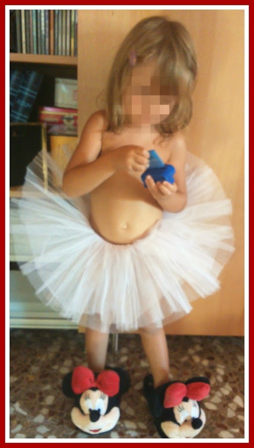 Como veis, jugando, jugando, solo se viste con los tutus que le he hecho.