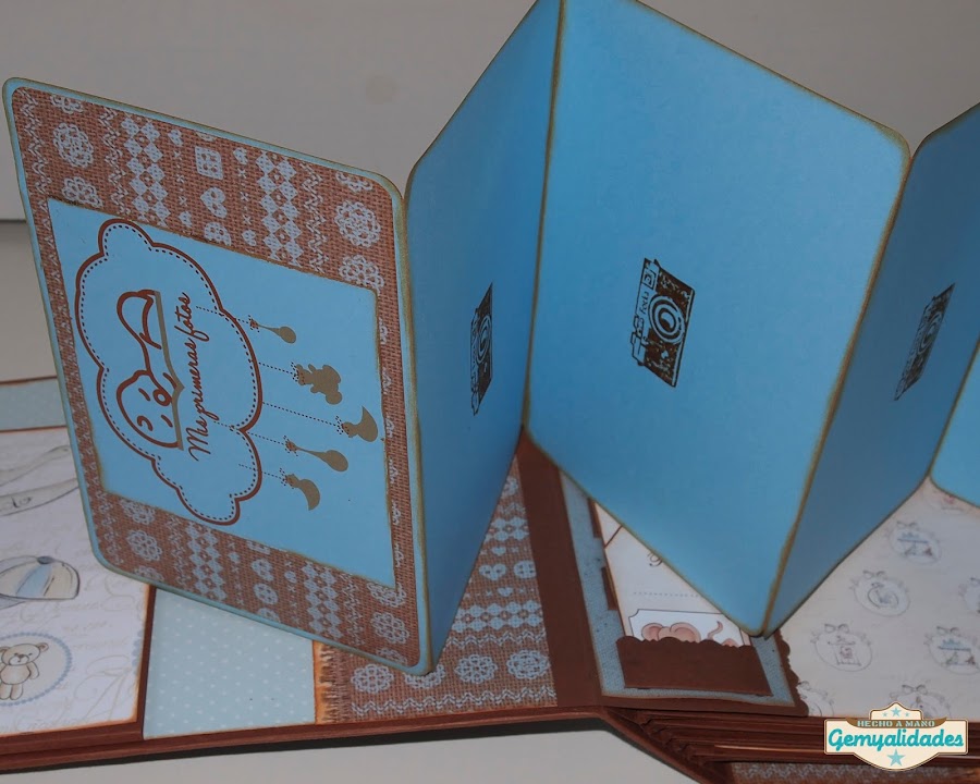 Nada más abrir el álbum, vemos un desplegable para las ecografáis y las primeras fotos del bebé.