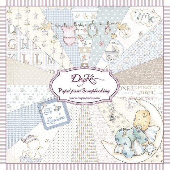 Pues bien, con estas premisas, lo primero era escoger los papeles que iba a utilizar, más o menos lo tenía claro, pero tenía que consultarlo con ellos y les enseñé la preciosa colección de Dayka para niño, a ellos también les encantó, por supuesto. Si no sabéis aún de cuál os hablo os pongo la foto: