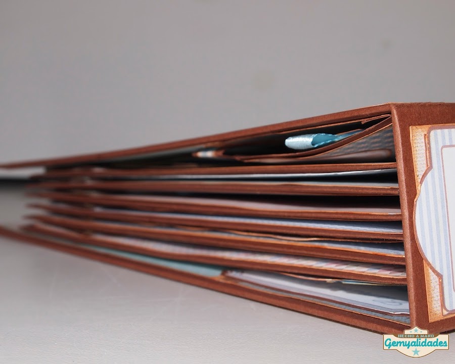 Las cartulinas de colores que escogí para la base del álbum fueron en azul cielo y en marrón oscuro, me encanta esa combinación y con estos papeles queda "pa morirse".