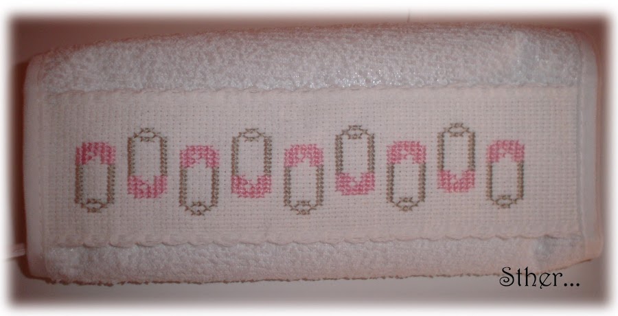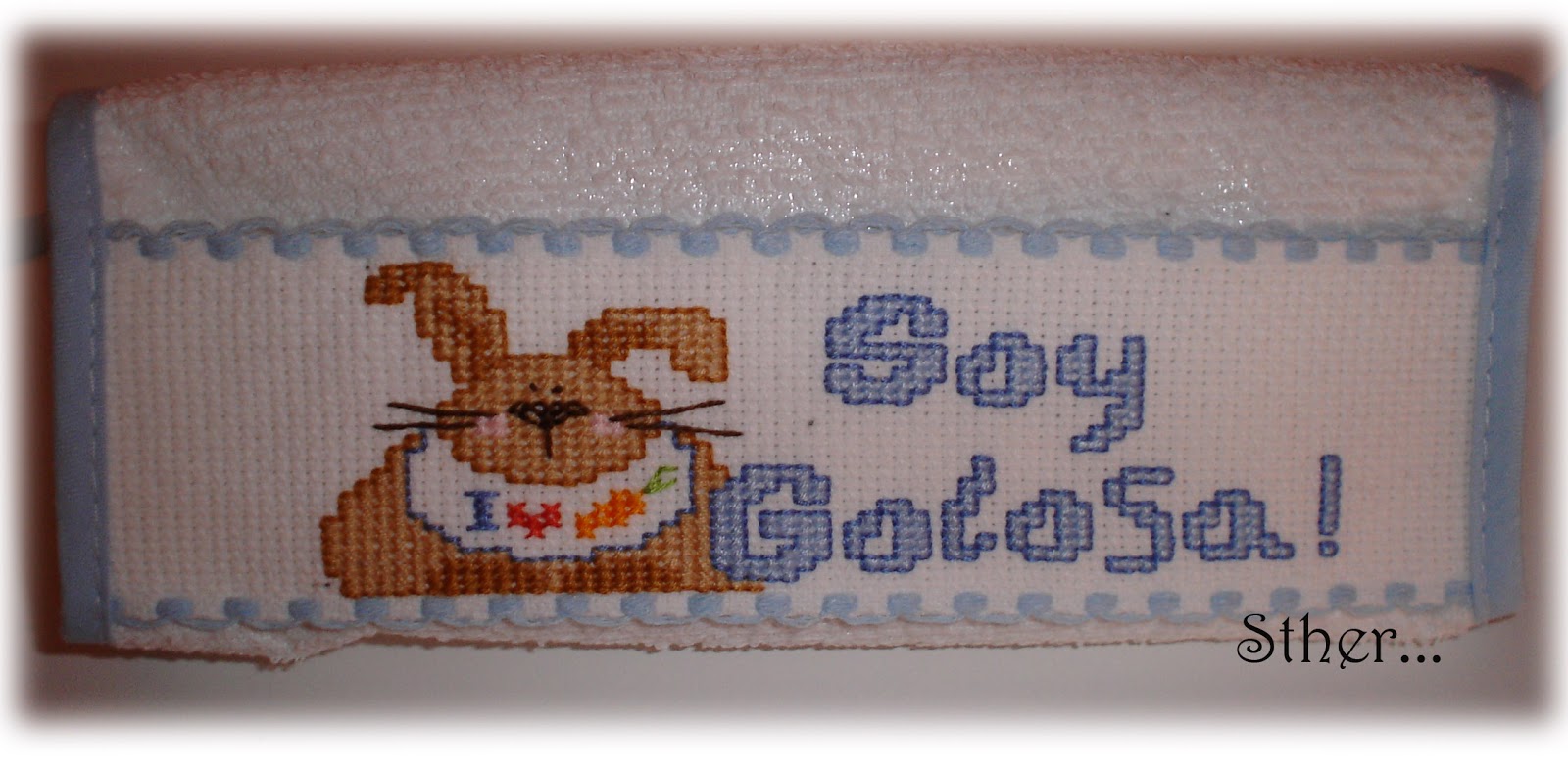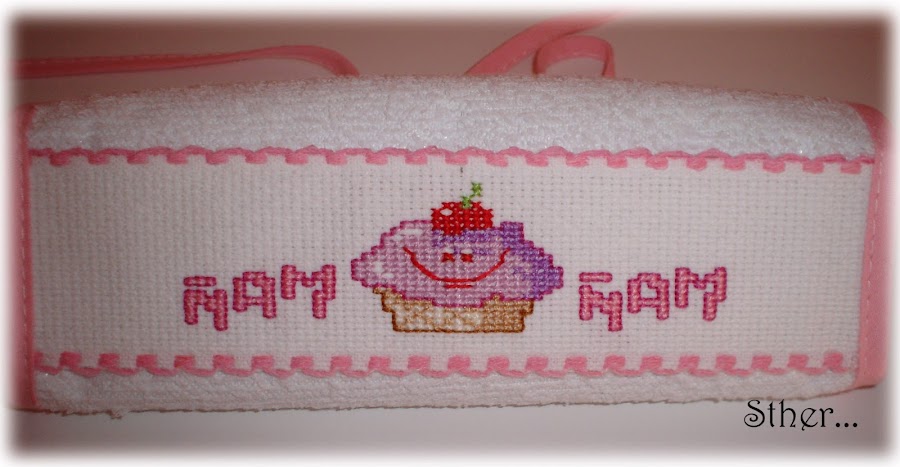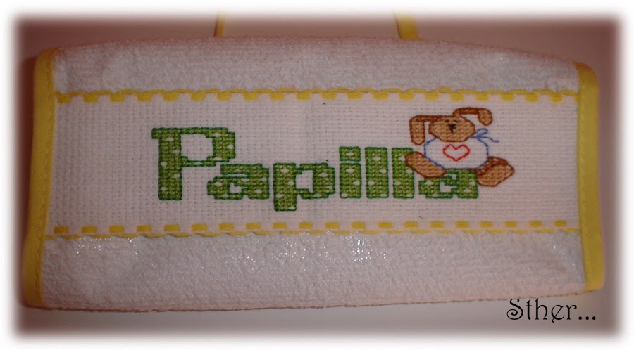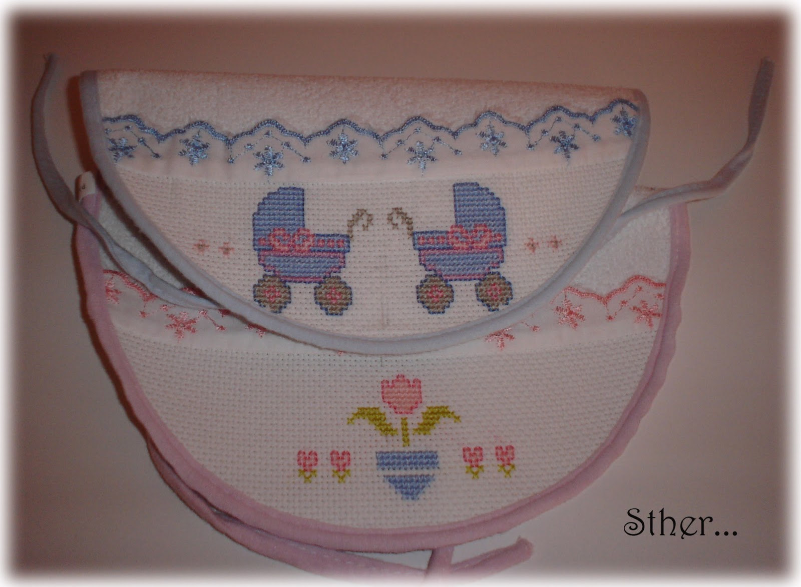 Hola de nuevo!!! Cómo dije en la entrada anterior, he estado recopilando algunas cosas para enseñaros que había hecho para mi niña. Y bueno, como ya sabéis, me he aficionado mucho al punto de cruz y durante el embarazo he practicado haciendo baberitos para mi niña...