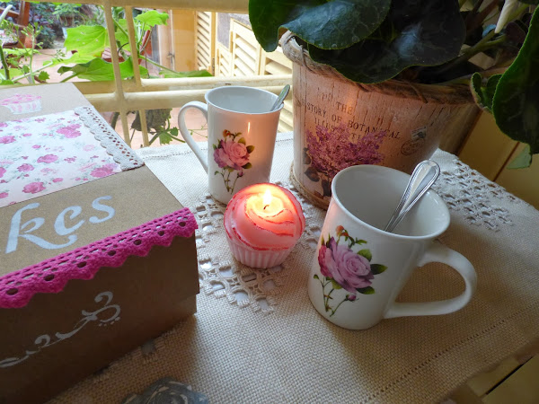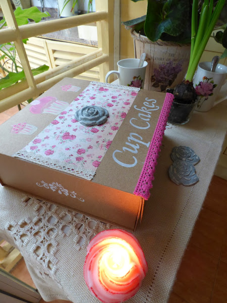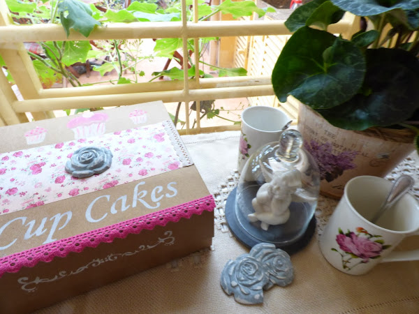 Ya veis el carrito que tengo ahí...lo "heredé" de una de mis hermanas que reformó su cocina y no lo quería y está para darle un repasito....hoy me ha servido para montar un pequeño rincón con la caja y otros detalles
